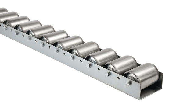 The high resistance roller tracks allows sliding guidance of large and heavy containers. Its normally used in positions near the floor. It is necessary in those cases where you need aditional supports for the containers, as well as the two side tracks HL-TR80.