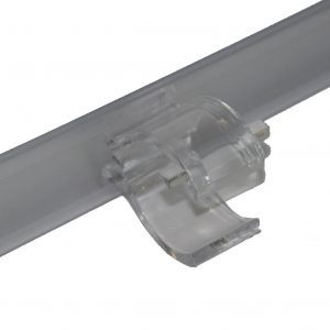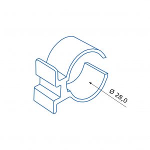 Grapa de fijación de etiquetero ES-150 sobre tubo. Puede realizar un apoyo tangencial con los conectores T-M para evitar giros.