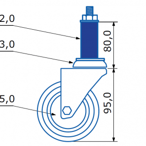 Rueda encastrada en el tubo, para estructuras tipo carro ligeras. Función giratoria sin freno. Diámetro del disco: 75 mm. Carga soportada: 70 kg.