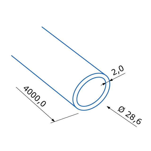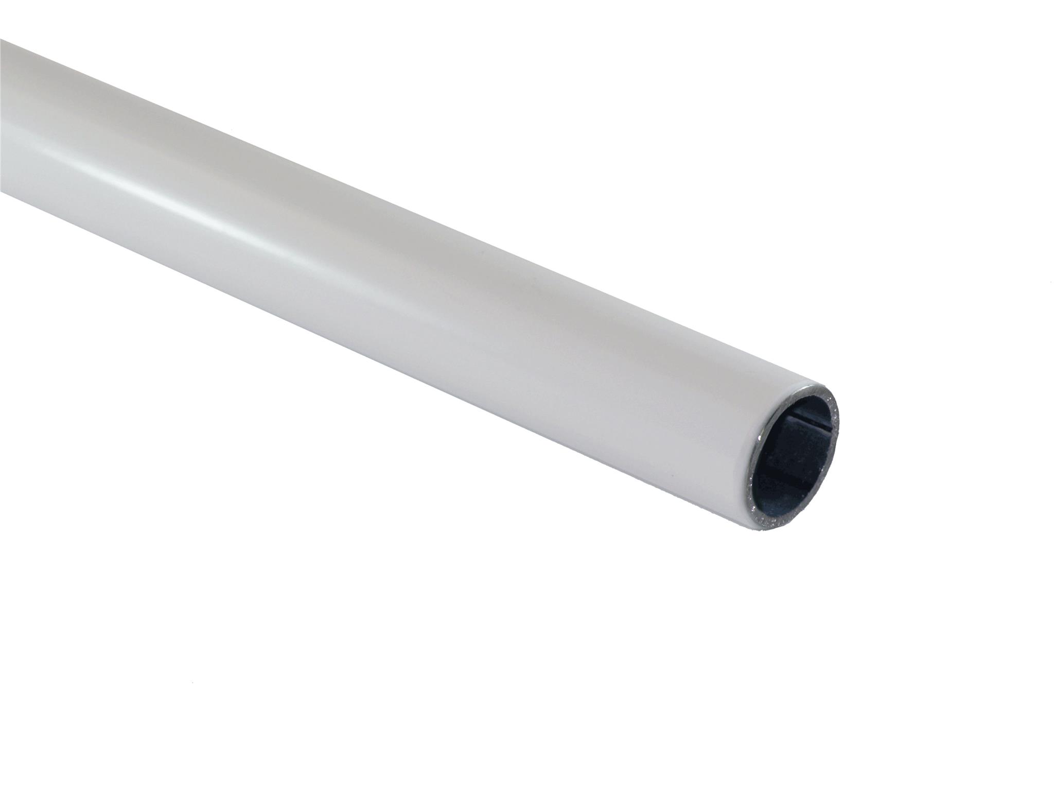 Tubo de acero de 28,6 mm de diámetro exterior y 400 cm de longitud, con espesor de acero de 2 mm y recubrimiento termoplástico blanco.